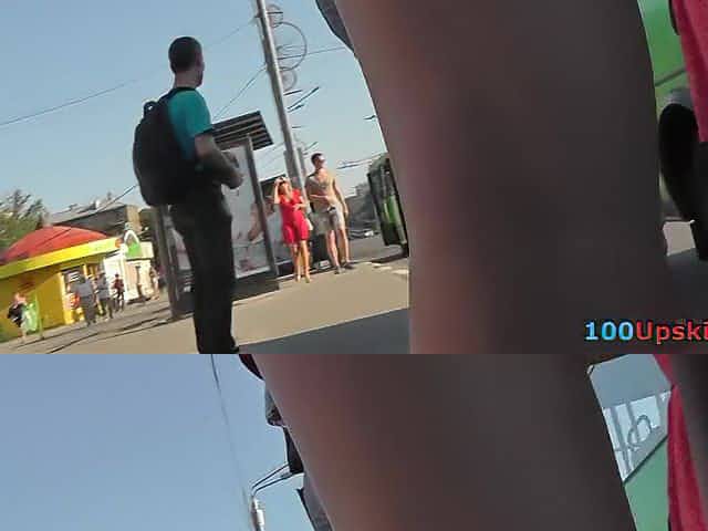Woman upskirt public video shows her big ass in red thong