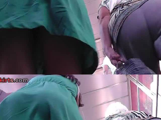 Upskirt vid of girl in tight skirt, wearing a g-string
