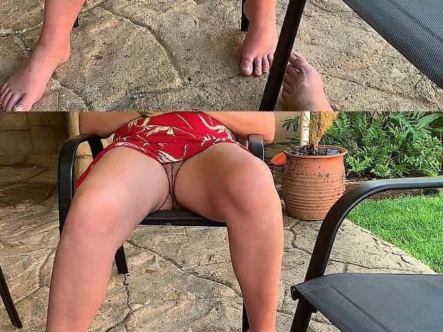 Outdoor mutual masterbation with the neighbours wife Upskirt no pants