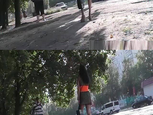 Upskirt tease by unsuspecting girl in nylon pantyhose
