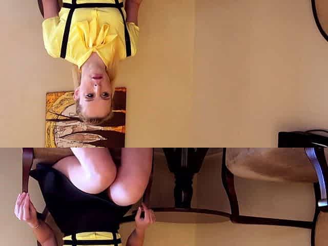Kinky teen blogger tries on skirts on sex tool with no pants on mirror