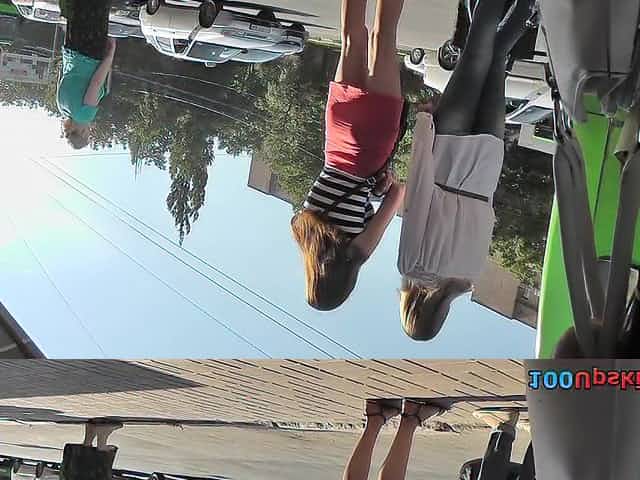 Girl gets caught on upskirt cam waiting bus with friend