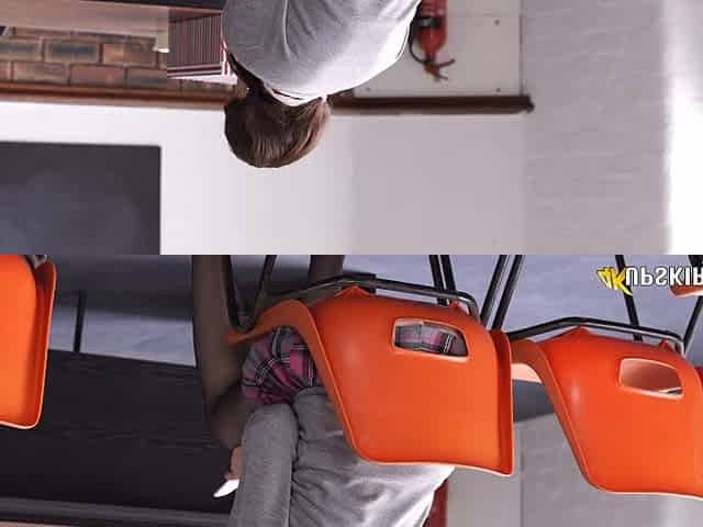 Pretty college chick in short kilt skirt teases with yummy pussy and wet panties