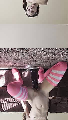 See my ride this BIGGEST HORSE RAMROD VIBRATOR..!!! Wearing Pink and White Nylons =P
