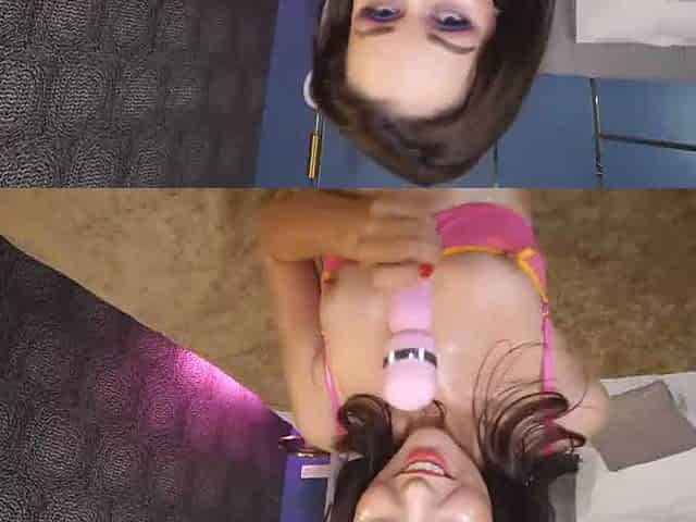 Nice-looking model Rose Ebony uses a Hitachi to climax