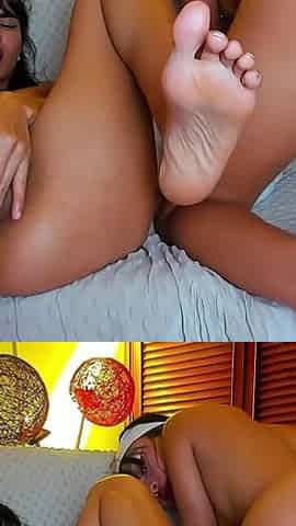 FREE two Camgirl stuffing 9.5 inch vibrator inside her butt!