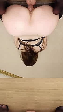 Breasty redhead bitch getting it in the booty from the front with a sex tool in her vagina.