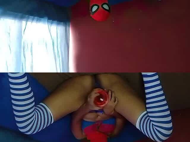 Spider gal Masturbándose y corriendose y en vibrator de dragón completo