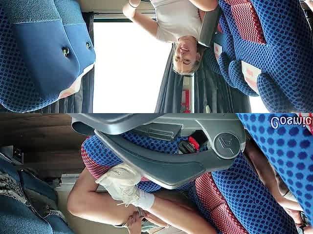 Risky! Gal Cums on Public Bus with Dildo