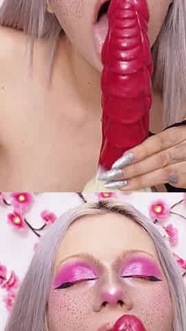 Bitch Fist Her Tiny Pussy and Cum Creampie so Hard. Suck Huge 24cm Dildo