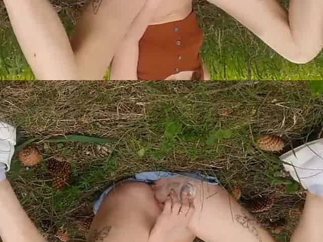 Kitty Longlegs Found a Beautiful Spot in the Woods. and Decided to Get an Orgasm Using Her Vibrator and Dildo.