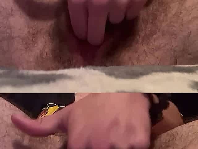 Bushy FTM Playing with Hunk Vagina Leaking Cum