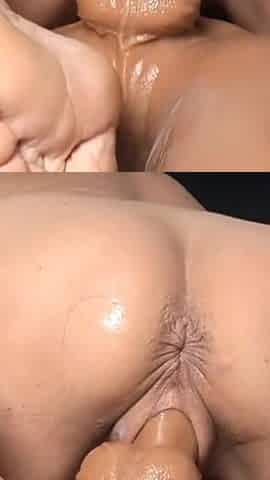They Put a Huge Dildo in My Shaved Pussy and Ass and I Have Anal Orgasm
