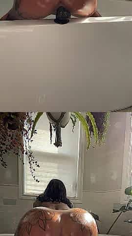 My Stepsister in Yellow Dishwashing Gloves Takes a Bath with a Dildo and Lots of White Foam and Soap