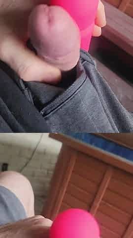 Excited ftm plays with sex-toy and vibe until that guy cums