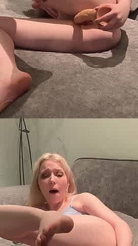 Sexy Blonde Girl Masturbating with a Dildo on My Bed