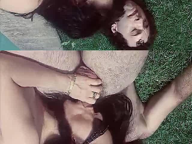 Vintage babe pussylicked in interracial trio