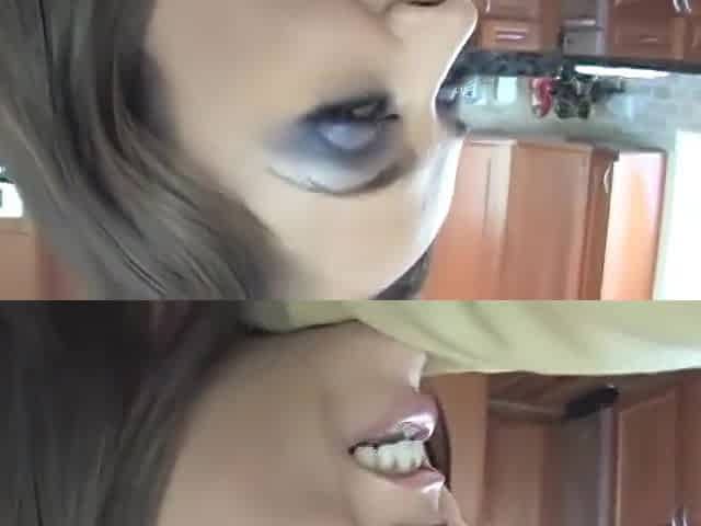 Blindfolded girl swallows black cum #1