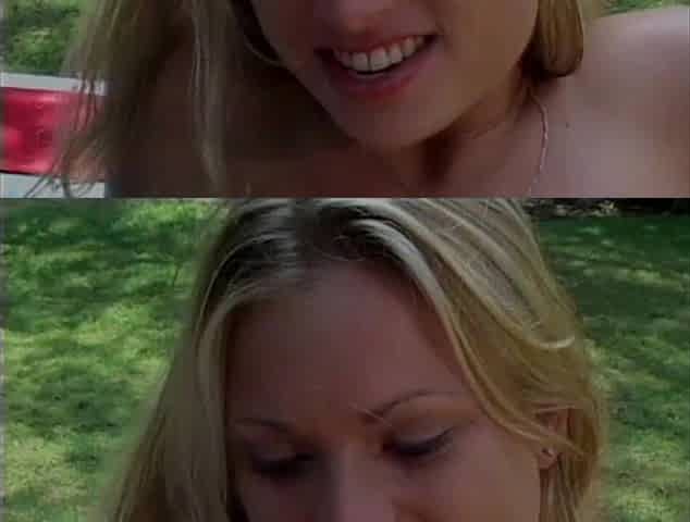 Two Young Lesbian Blonde Girls with Huge Tits Masturbating in the Park