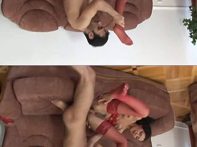 Nathalie Hot sex with big titted milf in red lingerie