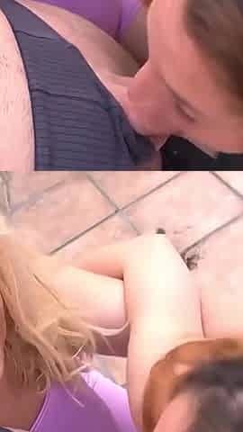 Bigtitted blonde voyeur teasing wanker