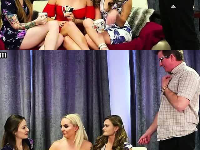 Gorgeous CFNM babes deepthroating a guy