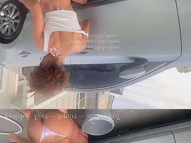 Black Washes Her Car in Skimpy Garments During the time that Neighbour Watches