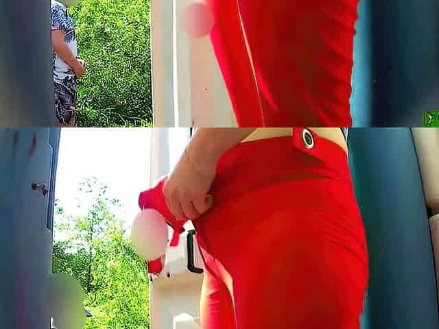 Gorgeous passer honey strokes my knob and sucks in public outdoors.
