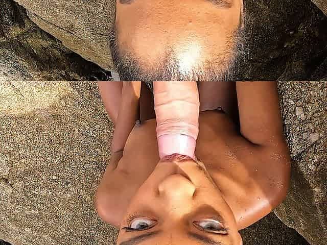 Sofi Vega gives a sloppy oral sex to a stranger on the beach