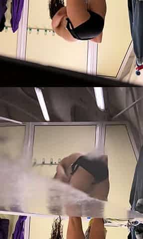 Pleasant breasty mom changes clothing and tries on different outfits whilst touching herself.