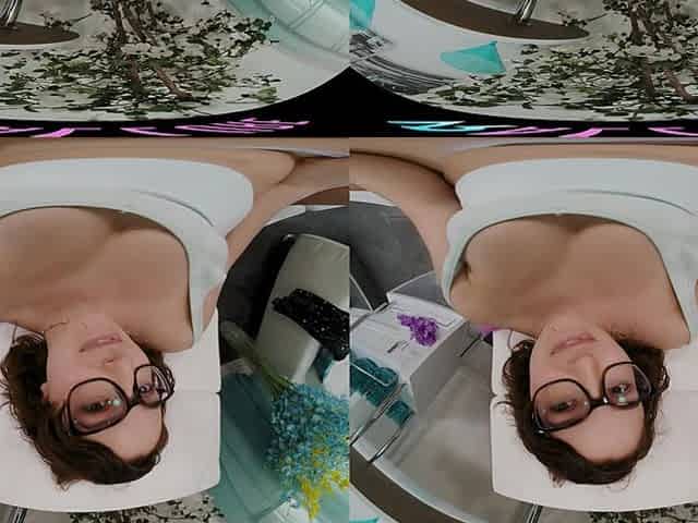 Busty brunette babysitter masturbates with her toy in virtual reality