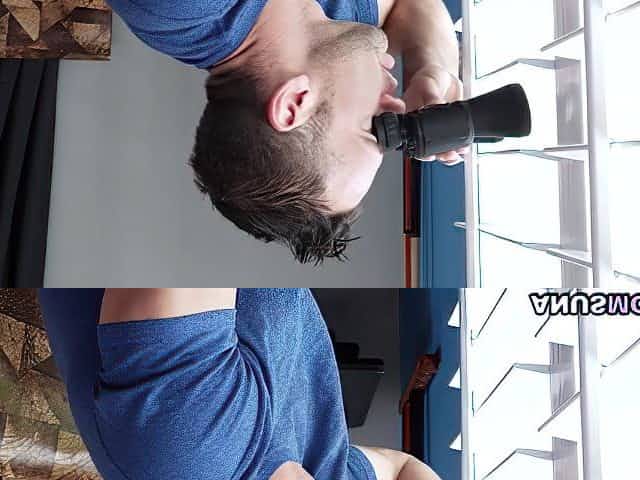 Dirty voyeur spies on slim amateur teen at home and rings her doorbell