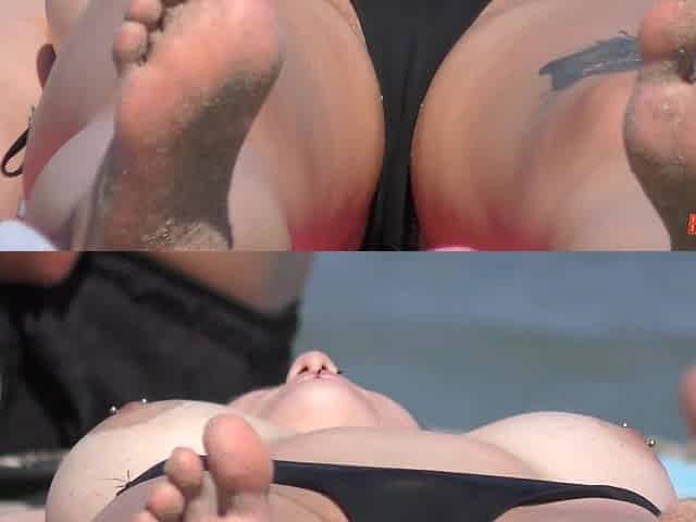 Closeup video of a nude beach horny pussy minge