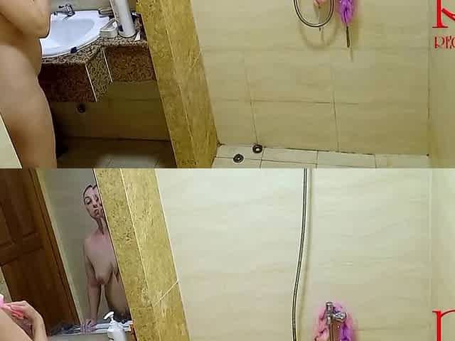 Shower. Voyeur Camera. Nude In The Shower Washes And Rubs With Oil. S1 With Regina Noir
