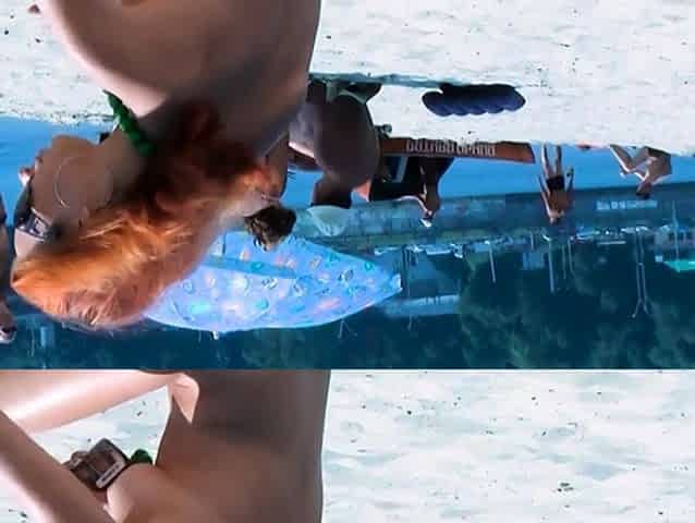 Hot nudist teen jumps in the water