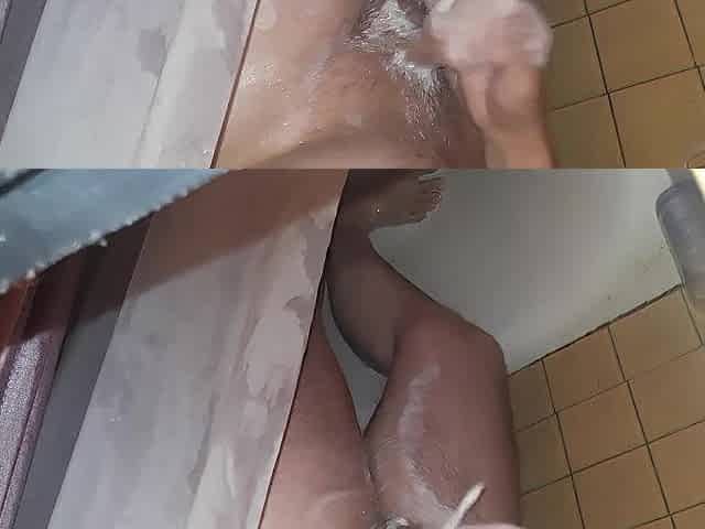 Hottie rubs cosmetic massage lotion oil on her marvelous legs Shaving legs washes booty and twat two full