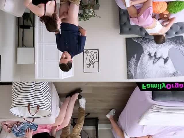 Topless Step Mamma Lunchs her Hunk's Knob whilst Folding Garments