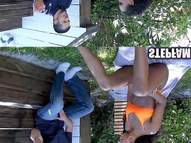 Hot Ebony Babe In Bikini Catches Bro Spying On Her And They Fuck With Bikini Babe