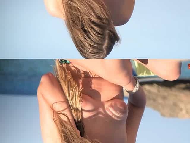 Close up of a Blonde teen 18+ girl's feet and ass as she sunbathes on the Beach