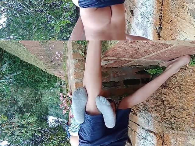 eighteen year old teen gal in short shorts out of pants. Hidden camera in the Park. Close up
