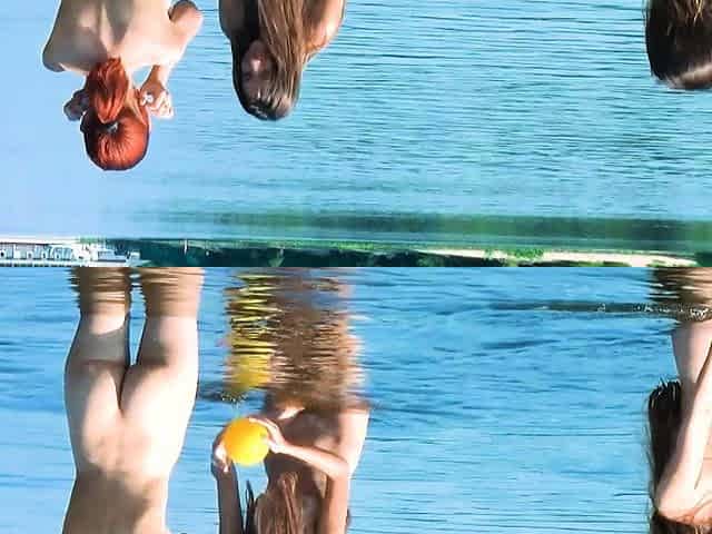 Delectable nudist teen with beautiful breasts loves being topless at the beach
