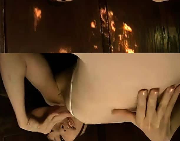 Prurient brunette gal is masturbating next to her fireplace