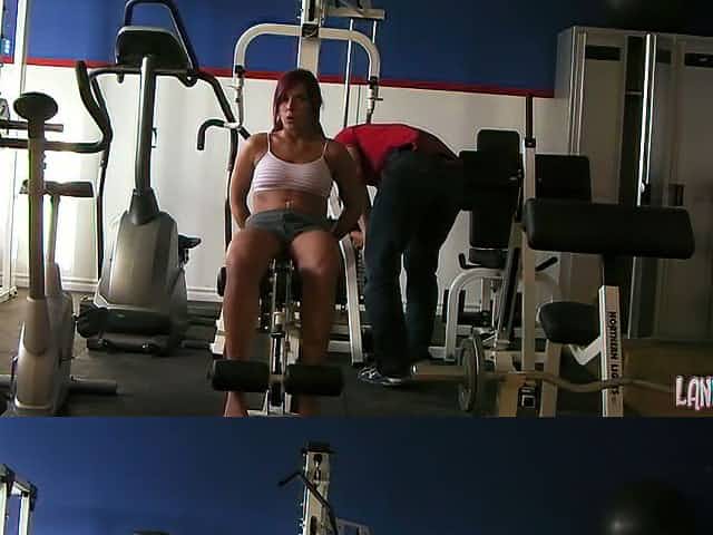Sexy redhead chick Roxy Lane seduces her trainer in gym