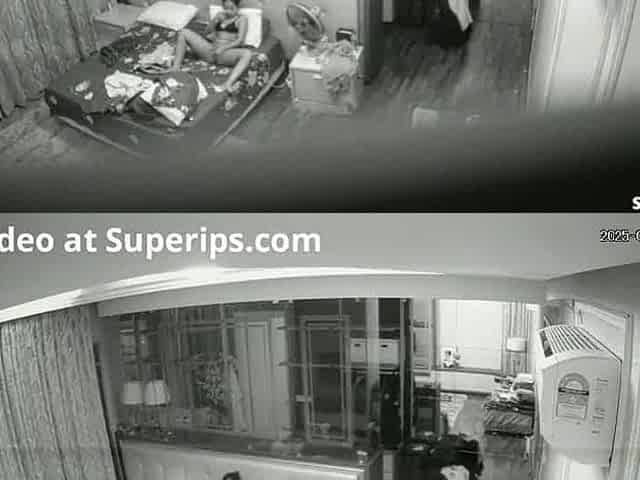 Spy cam watches chick shower