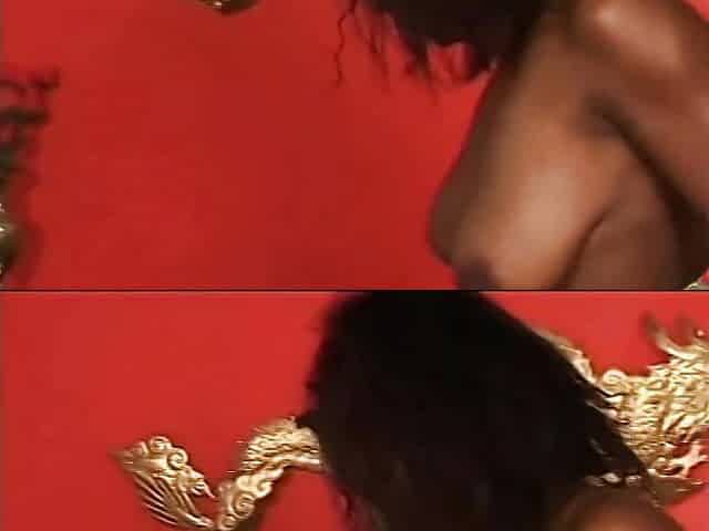 "Hot black whore deep throats a hard long cock then gets fucked"