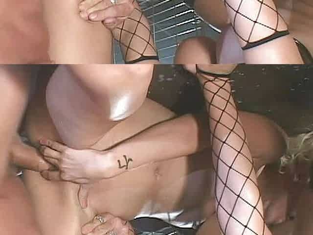 Blonde whores wearing latex sharing dick and getting pussy licked