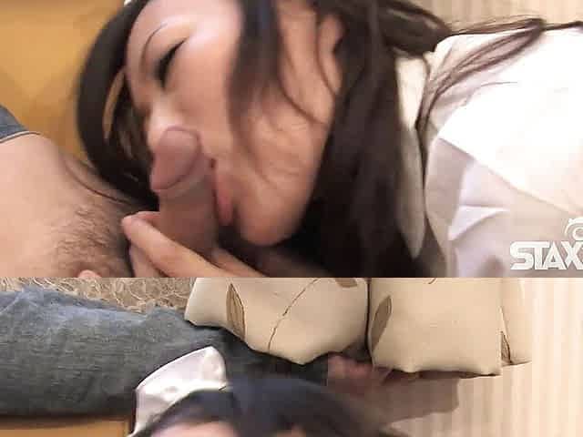 Nasty Japanese waitress gets her pussy and face filled with cum in hot gangbang