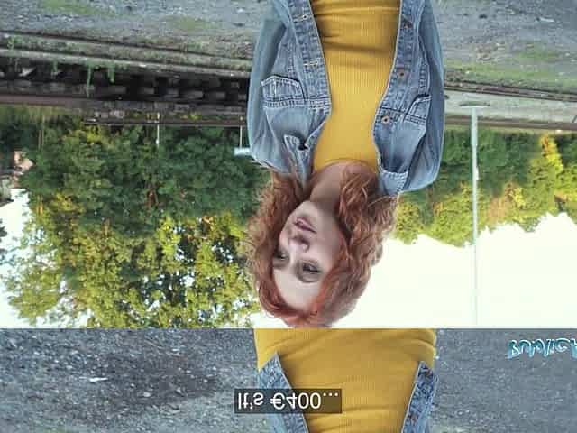 Public Agent Hawt redhead waitress sucks rod and gets screwed doggy position outside in public
