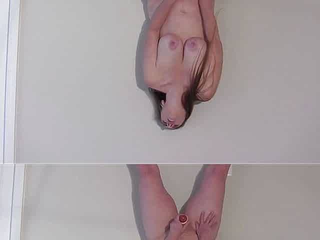 Lactating and Masturbating with My Sex tool Stuck against the wall, beneath view