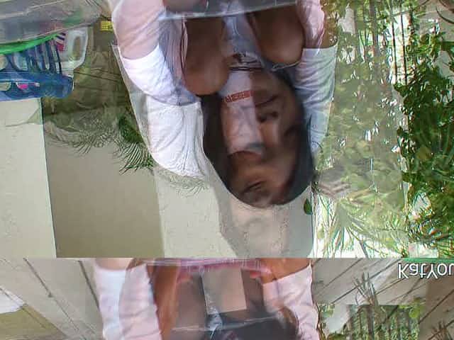 Kat Young is washing her clothes in front of cam outdoor